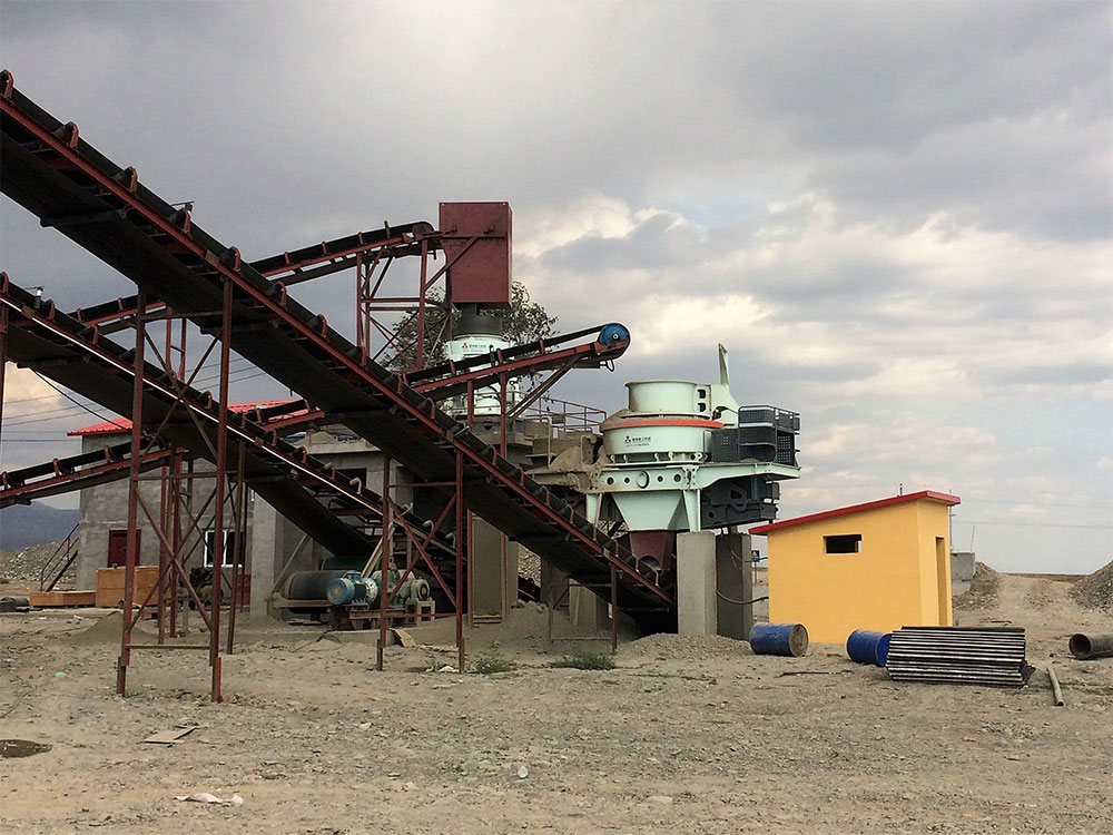 تدخل الأحجار التي تم سحقها في البداية مرحلة التكسير المتوسطة. وحسب صلابة الصخور والاحتياجات المحددة، يختار المصنع كسارة مخروطية أو كسارة صدمية لمزيد من التكسير. تُعد الكسارات المخروطية مناسبة لمعالجة الصخور عالية الصلابة، بينما تُعد الكسارات الصدمية أكثر ملاءمة لمعالجة الصخور متوسطة الصلابة واللينة. بعد هذه المرحلة، تُسحق الأحجار إلى أحجار صغيرة بأحجام تتراوح بين 1 و5 سم استعدادًا لخطوة صنع الرمل.